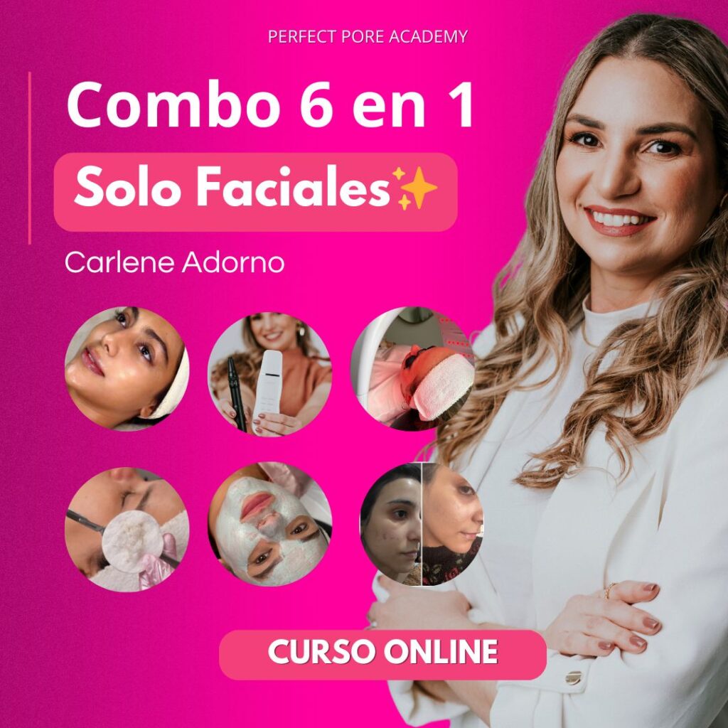 COMBO FACIALES, 6 CURSOS EN 1 – Reúne las 6 TÉCNICAS FACIALES más buscadas: Limpieza Facial Profunda, Dermaplaning, BBGlow, Peeling, Drenaje Linfático y Dermapen.