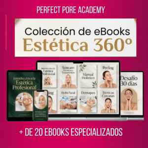 COLECCIÓN DE EBOOKS:  Formación completa en estética: cosmetología, limpieza facial, peeling y skincare, técnicas avanzadas como Dermaplaning, Dermapen y Hydra Facial, tratamientos K-Beauty, drenaje linfático, maderoterapia, diseño de cejas, pestañas y labios, más un desafío de 30 días para impulsar tu marca personal.